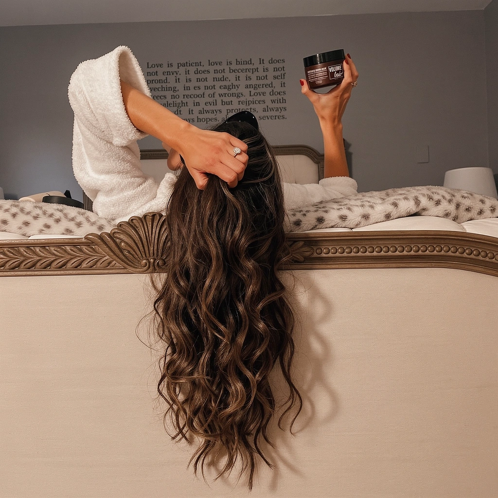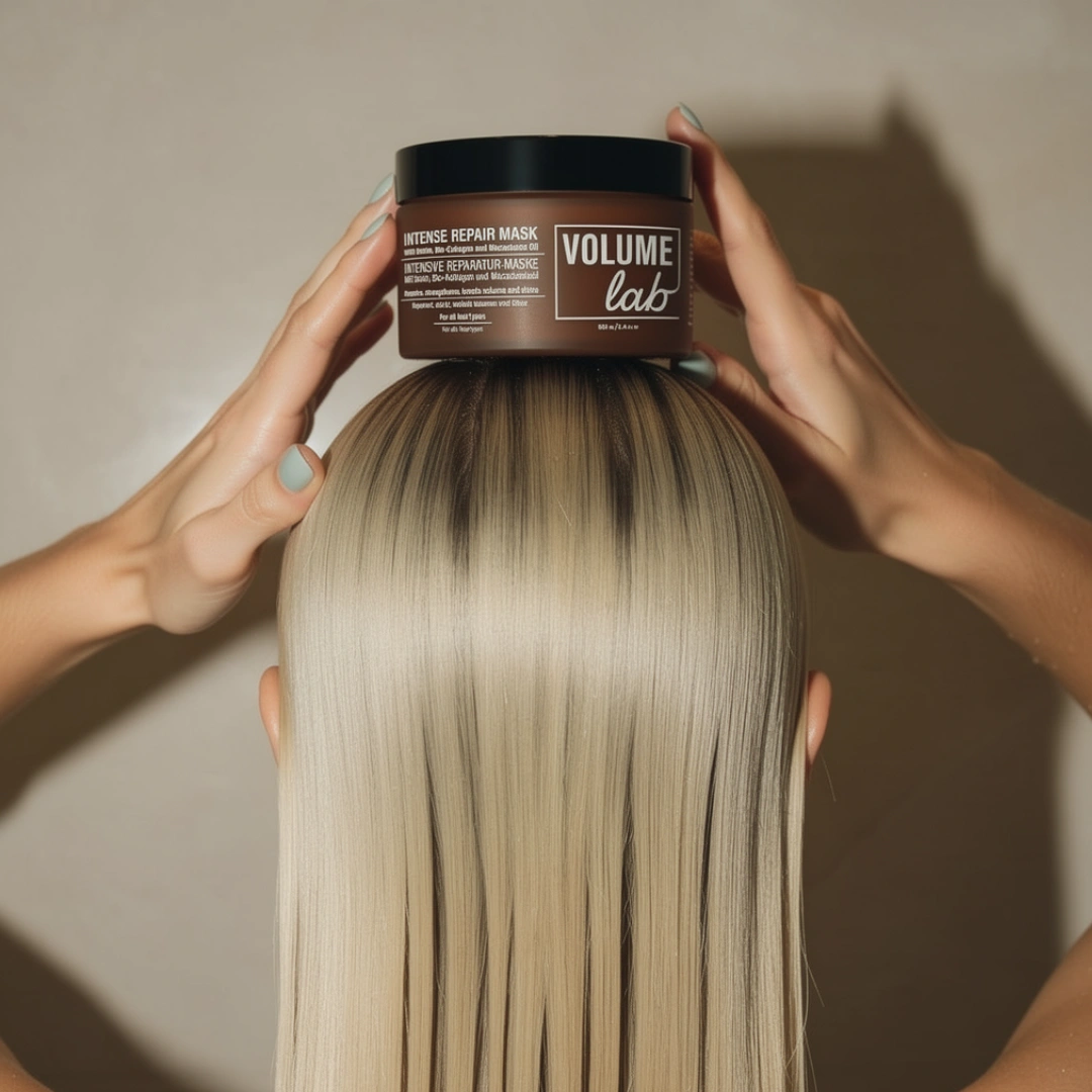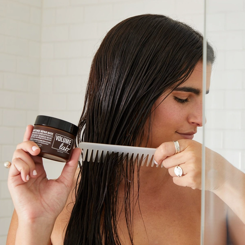 VOLUME LAB kaukė (100 ml): Kruopščiai išplaukite plaukus šampūnu, gerai išskalaukite. Aplikuokite plaukus glotninančią priemonę, gerai išskalaukite.